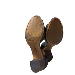 Clarks Sz 9.5Black Perforated Leather Heeled Sandals With Back Zipper Closure