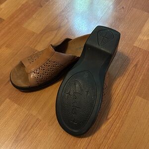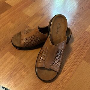 Clarks Tan Leather Perforated Slides Sz 7 New no box
