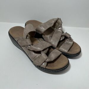 Gently worn women’s size 7 Clark’s collection cushioned comfort walking sandals. Please review all photos for any signs of wear-pictured as is. Disclaimer: Any items with any wear/staining has not been treated, and unsure of ability to remove/treat condition. Comes from a smoke free home, bundle with other items to save & minimize shipping cost.