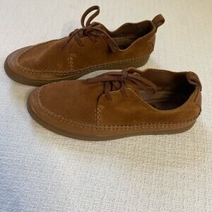 Clarks Tan Suede Leather Men’s Moccasin Casual Lace Up Shoes Comfortable 9.5