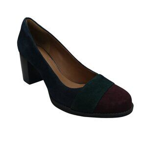 Clarks Tarah Brae Colorblock Suede Chunky Heel Pumps Womens 8.5