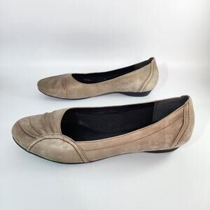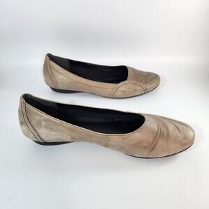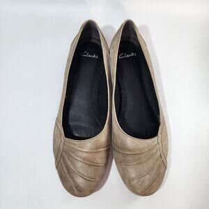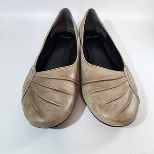 Clarks Taupe Gathered Toe Leather Ballet Flats Women's Size 11M