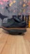 Stylish black leather Oxford style platform shoes with brown accents. Lace-up design. Perfect for any occasion.