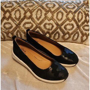 Pre Owned extremely comfortable size 5 Clark's Tennis Shoes. Worn twice and foot grew never to be worn again. Smoke free pet free home.