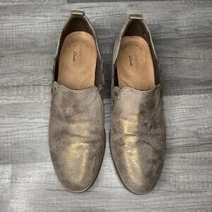 Clarks Trish Bell Womens Suede Slip On Booties Boots Gun Metal Size 8 1/2