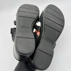Clarks sandals, Clarks Collection, black leather slides, comfort sandals, women’s size 9.5, summer shoes, casual sandals, walking sandals, travel shoes, slip on sandals, everyday sandals, supportive sandals, leather comfort shoes, orthopedic style sandals, cushioned footbed, adjustable straps