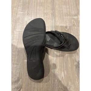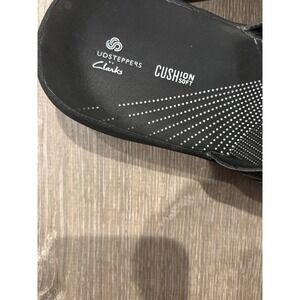 Clarks Udsteppers Cushion Soft Thong Sandals Black Patent Comfort Size 9