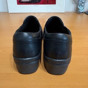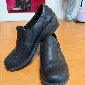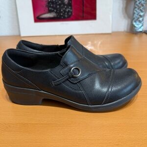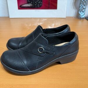 Sleek black slip-on shoes with a subtle buckle accent. Perfect for any occasion.