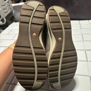 Part of the Clarks Unstructured Collection Removable OrthoLite footbed Antimicrobial Moisture-wicking.