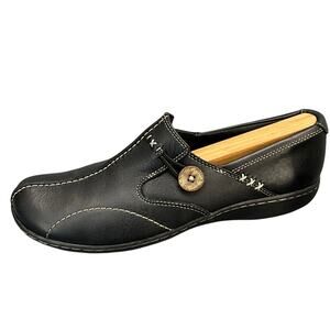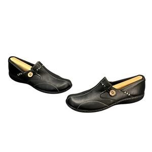 Clarks Un Loop Black Leather Slip On Comfort Loafer Women 8.5