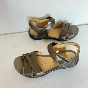 Clarks Un Vasha Sandal Bronze Leather Strappy Velcro Adjustable Fit Size 7