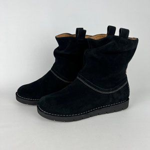 Clarks Unstructured Ashburn Womens Short Slouch Boot Black Suede size 6.5W Wide