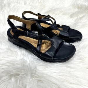 Clarks Unstructured Black Leather Sandals Sz 8.5