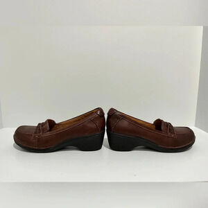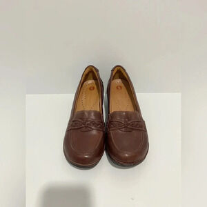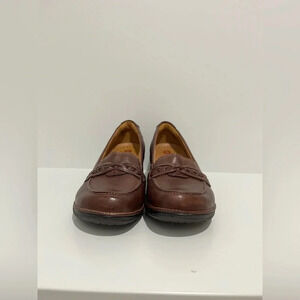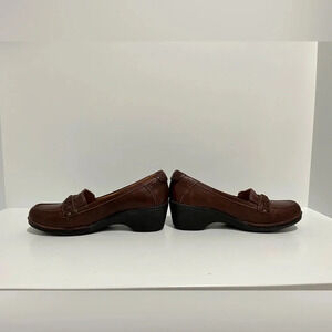 Clarks Unstructured Brown Leather Dress Casual Slip On loafers Heels Women's 9.5