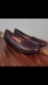 Brown leather loafer style shoes with suede upper toe box. Comfy, cushioned footbeds.