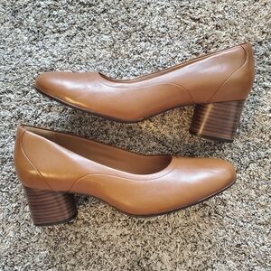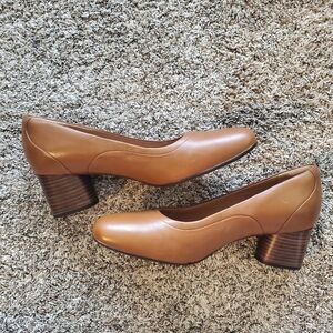 Clarks Unstructured Cosmo Step Pump Heel, Womens 10M tan Leather, New, No Box