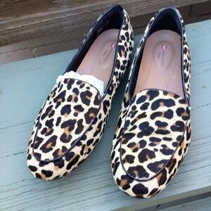 Clarks Unstructured Ladies Un Blush Go Leopard Print Pony Flat Sz 8.5 M Heel Height .86 inches