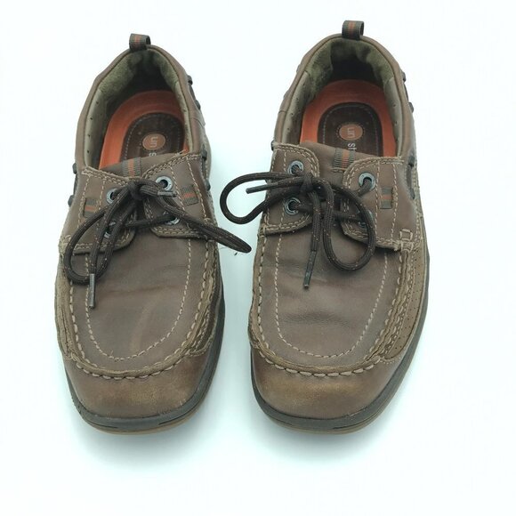 Brown loafers by Clarks Unstructured. Size is 8.5 M. They are in good used condition with some signs of wear see pictures for details.