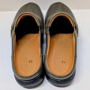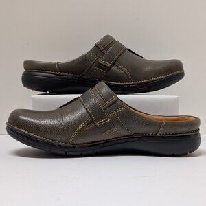 Clarks Unstructured Un Loop Ease Casual Mules in Dark Olive Leather