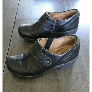 Clarks Unstructured Unsparrow Black Leather Shoes 6.5 Side Zip Comfort Clog