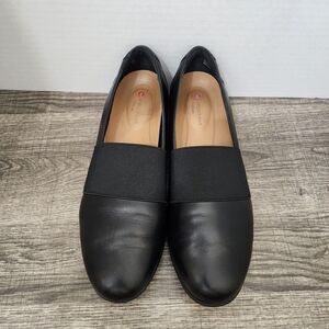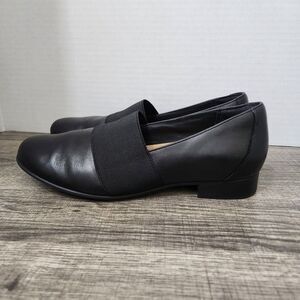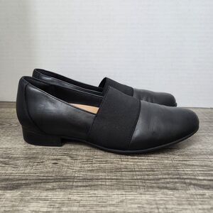 Clarks Unstructured Women 7 Black Leather Juliet Gem Slip On Flats