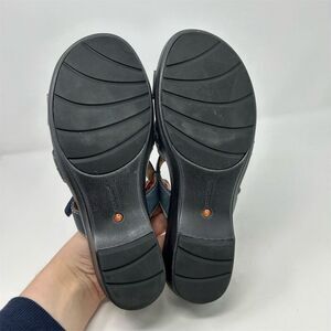Clarks Unstructured Women's Blue Leather Slip On Wedge Sandals Size 9.5 Comfort