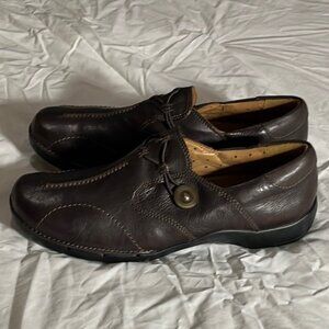 Clarks Unstructured Women's Un.Loop Brown Leather Slip-On Shoes Size 9