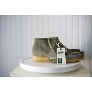 The iconic Clarks Wallabee Boot, made with a soft suede upper and a genuine crepe outsole. Its leather lining and sock liner surround the foot for soft comfort, and an airy EVA midsole lightens its weight.