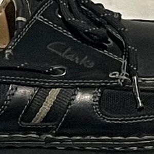Clarks Waterloo Men 12 Leather Boat Shoe Black Lace Up Comfort Slip On Loafer