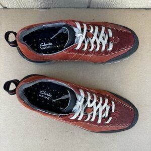 Clarks Wave Walk Trek Women’s Orange Leather Waterproof Lace Up Shoes Size 6.5