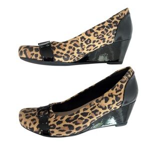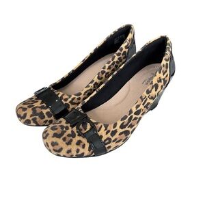 Clarks Wedge Heel Tan Leopard Suede Womens Shoe Size 7 Ultimate Comfort Cushion