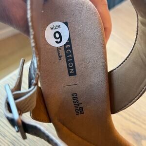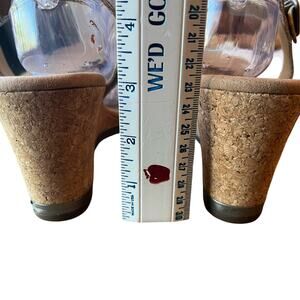 Clarks Wedge Sandals Sz 9 Pewter Gold Metallic Leather Comfort Buckle Strap Cork