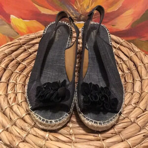 Clarks Wedge strap back size 7m Flower front Shimmer like pattern Rope sole Good condition!!