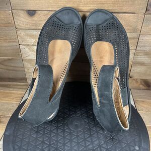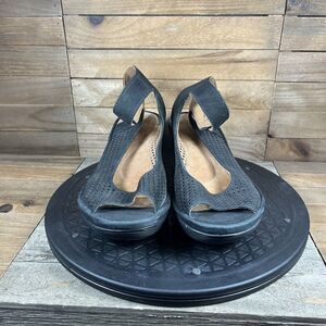 Clarks Wedge Sandals Womens 8.5M Reedly Salene Black Perforated Ankle Strap