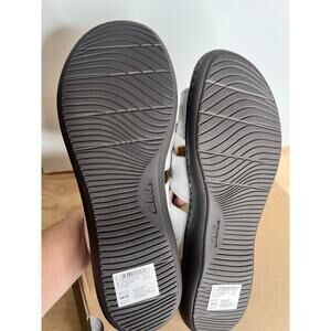 Clarks White Leather Comfort Slide Sandals Triple Strap Cushioned Footbed New