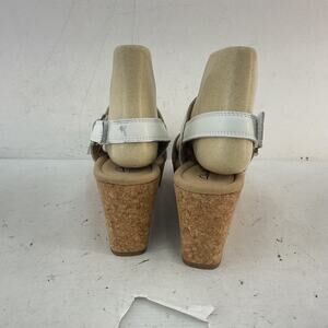 Clarks White Leather Slingback Platform Wedge Sandals Women's Size 9 Preowned