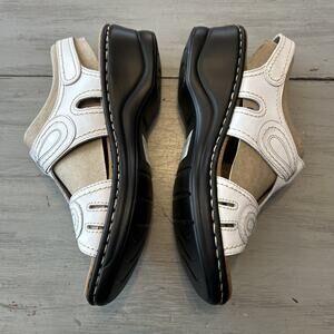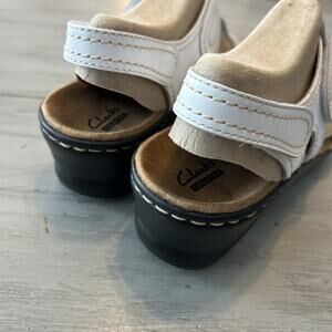 Clarks White Lexi Open Toe Stitched Bow Leather Sandal Sz 9.5
