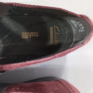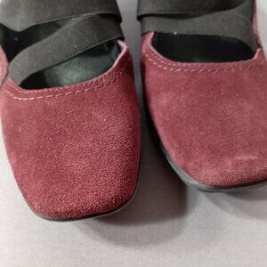 Clarks Wine Colored Suede Flats Elastic Strap 9W