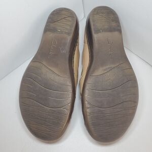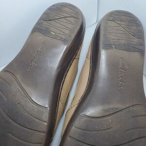 Clark's Wmns Sz 6.5 Tan Beige Leather Strappy Flat Comfort Sandals Preppy Summer