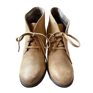Clarks Womans 10 Sashlin Sue Lace Up Ankle Bootie Leather Granny Boot Tan Brown