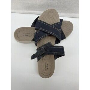 Clarks Women Elizabelle Bay Leather Sandal Navy Blue 7.5M Adjustable Straps. Condition is Pre-owned - Excellent. Shipped with USPS Ground Advantage.