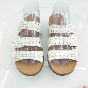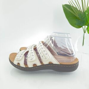 Clarks Women Laurieann Ayla Sandal Sz 7 Strappy Slide White Leather Slip On Shoe