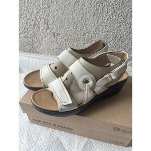Clarks Women Merliah Opal White Leather Cuir Noir Sandals, Size 11