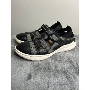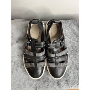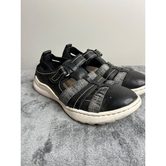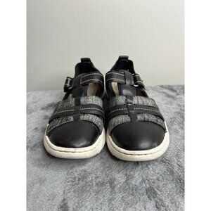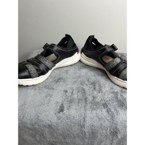Clark's Women Teagan Step Loafer Black grey leather sandal adjustable size 7M
