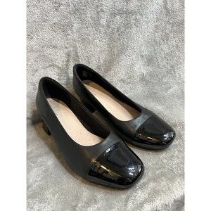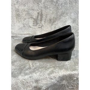Clark’s Women’s 10 M Marilyn Sara Leather Block Heel Pumps Black Cap Toe Money