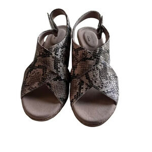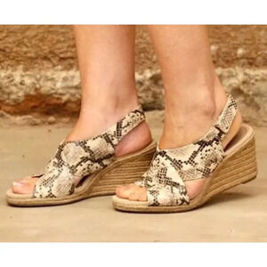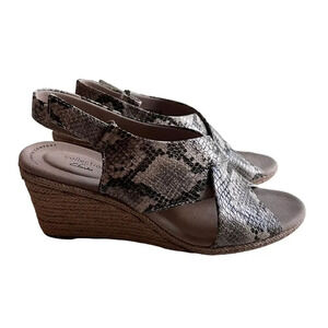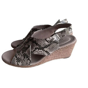 Clarks Women’s 10M Wide Taupe Lafley Alaine Snake Espadrilles Wedge Sandal