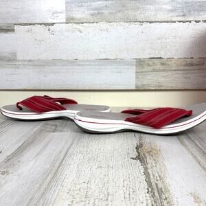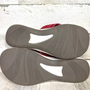 Clarks Womens 11 Red Leather Slip-On Cloudsteppers Brinkley Keely Sandals Shoes