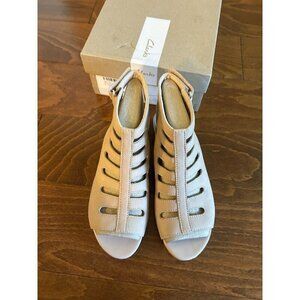 Clarks Women's 6 W Abigail Sing Blush Leather Open Toe Wedge Cork Sandals NEW