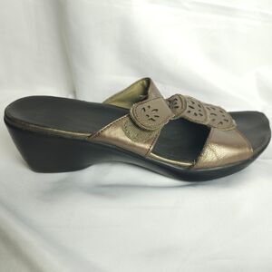 Clarks Womens 7M Brown Black Slip On Open Toe Sandals Comfort Shoes