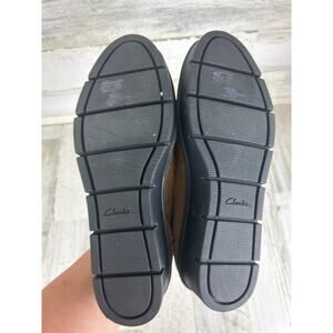 Clarks women’s size 8.5 Airabell loafers in rich brown leather with stylish ruffle detail. These slip-on platform loafers offer cushioned comfort and lightweight support, perfect for all-day wear. The versatile design pairs easily with work trousers, skirts, or casual denim, making them great for office wear, travel, or everyday style. Brand new and ready to wear.